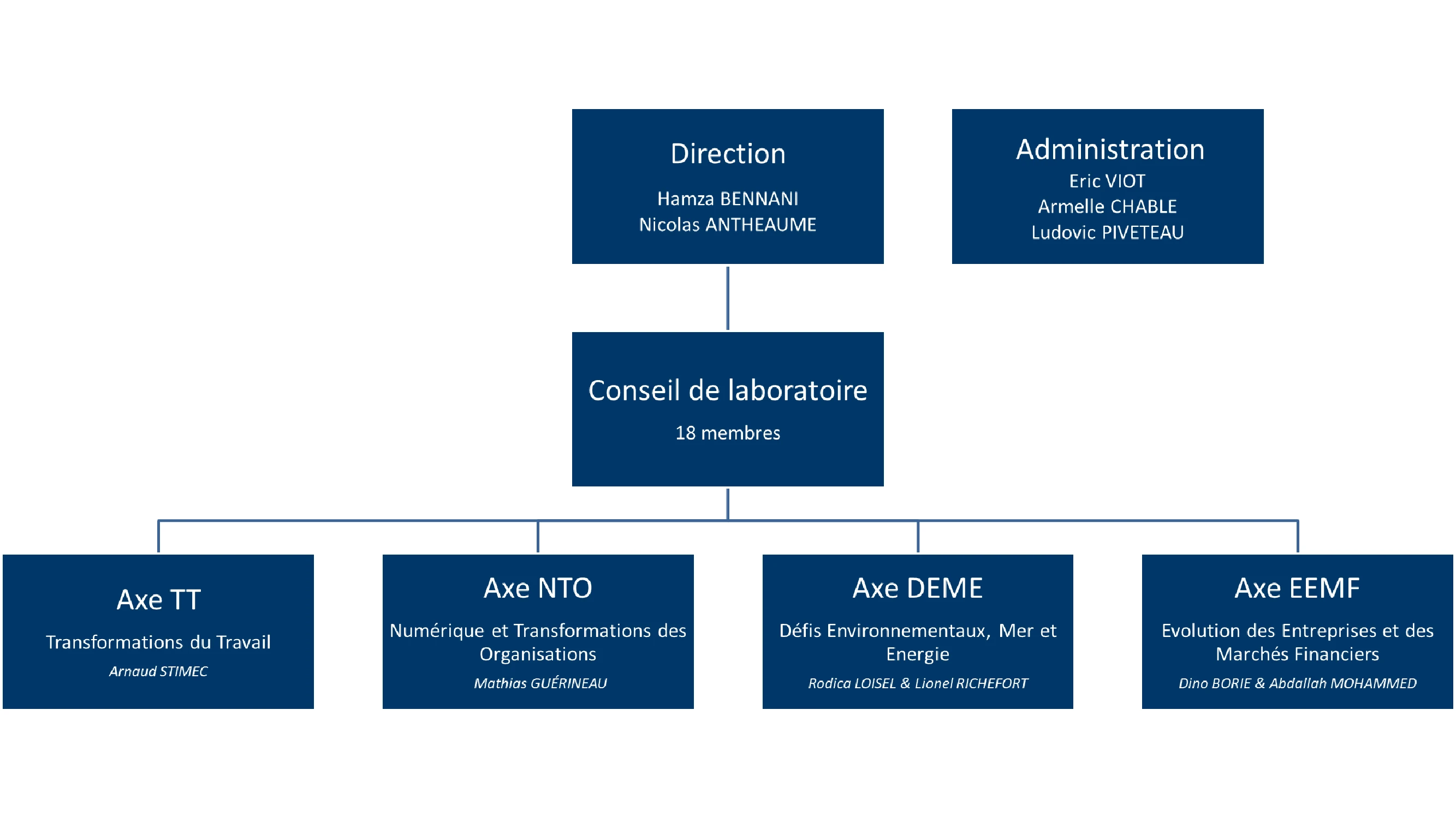 The Laboratory Council is consulted by management on scientific orientation and strategy (objectives, instruments, etc.), on any measures relating to the laboratory's resources, organization and operation, and more generally on any matter that management deems useful to submit to it.